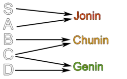 - Batalhem Finalmente!! Jōnin vs. Genin!! Sem Discriminação: A Grande Abertura da Exibição de Lutas!! (2005). A Quinta Hokage Tsunade cria uma competição entre Jonin (ninja de alto nível) e Genin (ninja de baixo nível). O OVA foi lançado originalmente em um disco extra com a edição japonesa do jogo eletrônico Naruto: Ultimate Ninja 3 para o PlayStation 2.[120]