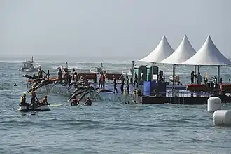 Na competição do triatlo, o percurso de natação é efectuado em águas abertas.