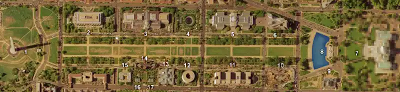 O National Mall contém os seguintes pontos de interesse:[7]