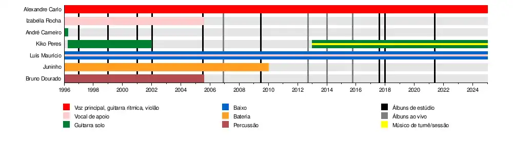 ![]() Natiruts em 2013 Na esquerda, ao fundo, Luís Maurício; ao centro, Alexandre Carlo; à direita, Kiko Peres | |