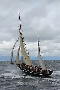 A vela começou por ser quadrada e em seguida trapezoidal para se tornar triangular, actualmente para se obter uma superfície vélica superior para uma dada altura de mastro começa-se a utilizar de novo a vela aúrica como nos monocascos de corrida.