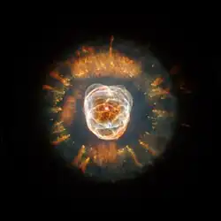 As nebulosas planetárias são formadas quando uma estrela que possui entre 0,8 e 8 massas solares (M⊙) esgota o seu combustível nuclear. Acima do limite de 8 M⊙ a estrela explodiria, originando uma supernova.[24]