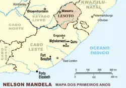Nasceu Nelson Mandela na atual província sul-africana de Cabo Leste, numa vila chamada Mvezo, no Transkei.[15] Passou parte da infância na vila de Qunu (a mesma onde construiu uma casa, depois de liberto). Viveu, a partir dos nove anos, na vila real de Mqhekezweni e depois em Engcobo e Fort Beaufort, onde concluiu os estudos secundários; mudou-se, finalmente, para Alice (Porto Elizabeth), onde ingressa na faculdade.[16]