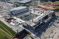 - ↑ «Arena Corinthians instala último módulo metálico da cobertura Oeste». 29 de maio de 2013. Consultado em 20 de junho de 2013