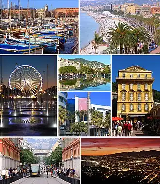Nice (em niçardo: Niça ou Nissa; em italiano: Nizza; em grego: Νίκαια; em latim: Nicaea) é a quinta cidade mais populosa da França e a capital do departamento dos Alpes Marítimos. A área urbana de Nice se estende para além dos limites administrativos da cidade, com uma população de cerca de 1 milhão de habitantes,[1][2] em uma área de 721 quilômetros quadrados.[1] Localizada na região da Côte d'Azur (Costa Azul), no litoral sul do país, nas margens do mar Mediterrâneo, Nice é a segunda maior cidade francesa na costa mediterrânica e a segunda maior cidade na região de Provença-Alpes-Costa Azul, depois de Marselha. Nice também está a cerca de 13 km de Mônaco e seu aeroporto é uma porta de entrada para o principado.