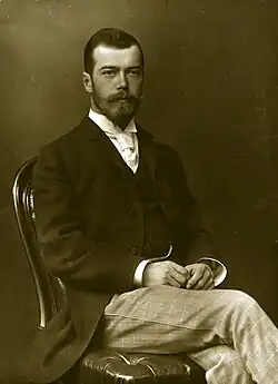 Nicolau II (em russo: Николáй Алексáндрович Ромáнов; romaniz.: Nikolái Alieksándrovich Románov; Tsarskoye Selo, 18 de maio; 6 de maio de 1868 no calendário julianoEcaterimburgo, 17 de julho de 1918), cognominado "São Nicolau, o Portador da Paixão", pela Igreja Ortodoxa Russa,[i] foi o último Imperador e Autocrata de Todas as Rússias, Rei da Polônia, Grão-Duque da Finlândia e Comandante-em-Chefe das Forças Terrestres do Império Russo.