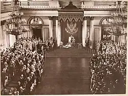 Apesar de ter visitado o Reino Unido antes de sua ascensão, onde observou a Câmara dos Comuns em debate e aparentemente impressionou-se pela máquina da democracia, Nicolau recusou qualquer ideia de dar algum poder para eleger representantes na Rússia. Pouco depois de assumir o trono, uma delegação de camponeses e trabalhadores de várias assembleias de cidades locais (zemstvos) foi ao Palácio de Inverno propor reformas na corte, assim como a adoção de uma monarquia constitucional.[33] Embora os argumentos que eles enviaram de antemão tenham sido redigidos em termos brandos e leais, Nicolau enfureceu-se e ignorou a recomendação do Conselho Imperial da Família, dizendo: …chegou ao meu conhecimento que durante os últimos meses foram ouvidas em assembleias de zemstvos, vozes daqueles que se satisfazem de um tolo sonho de que os zemstvos seriam convidados para participar do governo do país. Espero que todos saibam que eu devoto todas as minhas forças para manter, pelo bem de toda a nação, o princípio absoluto da autocracia, tão firme e fortemente quanto meu lamentado pai.[34] Essas palavras mostram a intenção de Nicolau de continuar a política do pai e possivelmente contribuíram para o começo da sua impopularidade.