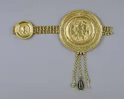Pedaço de cinto de ouro com medalhões de Constâncio II (r. 337–261) e Faustina no Museu de Arte Walters