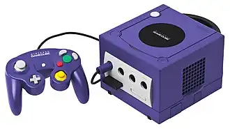 O ano de 2001 marcou o lançamento de dois consoles desenvolvidos pela Nintendo: o primeiro foi o portátil Game Boy Advance em março, cujo projeto do francês Gwénaël Nicolas afastou-se do estilo visual que caracterizou seus dois predecessores;[83] enquanto o segundo lançamento foi o console de mesa Nintendo GameCube em setembro.[84] O Game Boy Advance vendeu mais de quinhentas mil unidades durante sua primeira semana de lançamento nos Estados Unidos, tornando-se o sistema mais vendido no período.[85] A produção do portátil durou até 2010 e o total mundial de vendas foi mais de 81,5 milhões de unidades.[81] Já o GameCube se distinguiu de seus contemporâneos ao empregar um formato de mídia MiniDVD e também ao possuir um sistema de conexão com internet nativa para um número limitado de títulos.[86] O sistema teve jogos notáveis como The Legend of Zelda: The Wind Waker, Super Mario Sunshine, Metroid Prime e Super Smash Bros. Melee,[87] porém suas vendas foram inferiores à de seus antecessores e ficaram em apenas 21,7 milhões de unidades até sua produção ser encerrada em 2007.[81] Por comparação, seu principal concorrente o PlayStation 2 vendeu mais de cem milhões de unidades até 2005.[88]