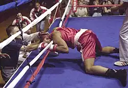 Lutadores que perdem por nocaute (pela contagem de dez ou por nocaute técnico) são suspensos automaticamente por 30 dias; três meses caso seja o segundo nocaute dentro de três meses; ou um ano se for o terceiro nocaute em um ano. Em competições AIBA, isto não se aplica caso o lutador seja desclassificado por nocaute técnico quando o lutador estiver atrás em mais de 20 pontos – 15 para níveis júnior – em qualquer assalto, exceto o último.