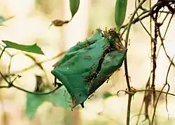 A planta é especialmente atrativa para as formigas-tecelãs ou tecedeiras (oecophylla), que fazem ninhos nas folhas desta planta. Essas formigas protegem a planta de certos insectos parasitas. O cheiro da fruta também atrai o morcego-da-fruta, que ajuda disseminar as sementes.