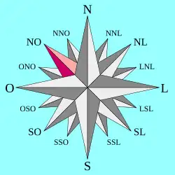 É um dos pontos colaterais da rosa dos ventos. Numa nota do atlas do cartógrafo português Diogo Homem (1558), o autor faz corresponder esta direção ao vento Maestro (Mistral).[2]