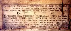 Michel de Nostredame (Saint-Rémy-de-Provence, 14 ou 21 de dezembro de 1503 – Salon-de-Provence, 1 ou 2 de julho de 1566), geralmente latinizado como Nostradamus ou aportuguesado como Nostradamo,[1] foi um astrólogo, médico e vidente francês de renome, mais conhecido por seu livro Les Prophéties, uma coleção de 942 quadras poéticas[nota 1] supostamente prevendo eventos futuros. O livro foi publicado pela primeira vez em 1555 e raramente deixou de ser publicado desde a sua morte.