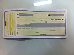 No Brasil, a nota promissória é regulada pelo decreto 2 044, de 31 de dezembro de 1908, e pelo decreto n. 57 663, de 24, de janeiro de 1966, artigo 75 em diante.