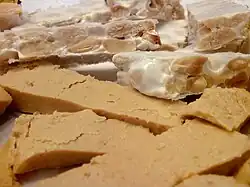 O torrão é uma variedade de Nougat tipicamente feita com mel, clara de ovos e amêndoas.[5] Há um grande variedade de torrões na Europa, América Latina e Filipinas. Em muitos países, também é comum ser encontrado coberto com chocolate.