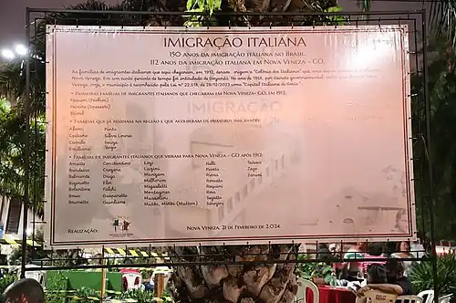 - ↑ «Museu da imigração italiana é inaugurado em Nova Veneza/GO». 5 de março de 2022