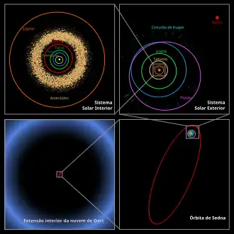 - ↑ "NASA Solar System Exploration". «Oort Cloud». Consultado em 2 de dezembro de 2008. Arquivado do original em 25 de outubro de 2008