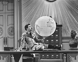O barbeiro, que havia assumido a identidade de Hynkel para não ser preso, é levado para a capital da Tomânia para um discurso de vitória.[14] Tal discurso é o total oposto das ideias antissemitas de Hynkel, expondo as ideias democráticas há muito na cabeça do barbeiro.