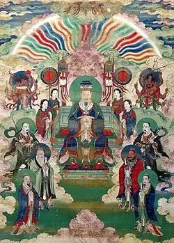 Pintura chinesa em seda retratando o Imperador de Jade e os Reis Celestiais
