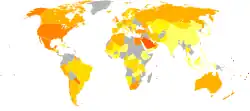A disponibilidade de energia dietética per capita varia de forma acentuada entre diferentes regiões e países, e foi-se alterando de forma significativa ao longo do tempo.[61] Entre o início da década de 1970 e o fim da década de 1990, a energia alimentar disponível por pessoa e por dia (a quantidade de alimentos comprados) aumentou em todas as partes do mundo, exceto na Europa do Leste. A maior disponibilidade encontra-se nos Estados Unidos, com 3654 cal por pessoa em 1996,[61] valor que aumentou para 3754 Cal em 2003.[61] Em finais da década de 1990, os europeus tinham disponíveis em média 3394 Cal por pessoa, enquanto que nas regiões em desenvolvimento da Ásia a disponibilidade era de 2648 por pessoa e na África subsariana de 2176 Cal por pessoa.[61][62] Apesar de estarem disponíveis recomendações de nutrição em diversos países, continuam a existir problemas derivados da ingestão excessiva de alimentos e de escolhas dietéticas pouco saudáveis.[63]