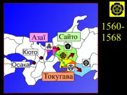 Dentro de um curto período de tempo, Nobunaga tinha alcançado Kyoto, colocado o clã Miyoshi para fora da cidade e feito com que Ashikaga Yoshiaki se tornasse o décimo quinto shogun do xogunato Ashikaga. Nobunaga recusou o cargo de Kanrei (Vice-Shogun) e finalmente começou a restringir os poderes do shogun, deixando claro que tinha a intenção de usá-lo como uma fachada para justificar suas futuras conquistas. Yoshiaki, no entanto, não estava satisfeito em ser um fantoche e mantinha contato secretamente com vários daimyos, forjando uma aliança anti-Nobunaga.