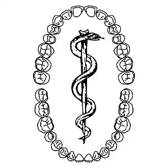 O Conselho Federal de Odontologia do Brasil (CFO) usa como representativo da profissão e da área um brasão distintivo, tal qual outras profissões, o mesmo se destaca pela gravura de uma cobra, envolta de um bastão e inscrita dentro de uma circunferência, fazendo menção ao Bordão de Asclépio dentro de uma cavidade oral[3].