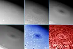 - ↑ «NASA Sees into the Eye of a Monster Storm on Saturn (Visões da NASA dentro do Olho de uma Tempestade-Monstro em Saturno)». NASA. 9 de novembro de 2006. Consultado em 10 de novembro de 2006. Arquivado do original em 5 de outubro de 2011