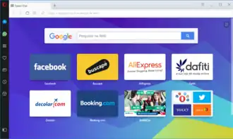 ![]() Opera 45 no Windows 10, exibindo a tela do "Speed Dial". | |