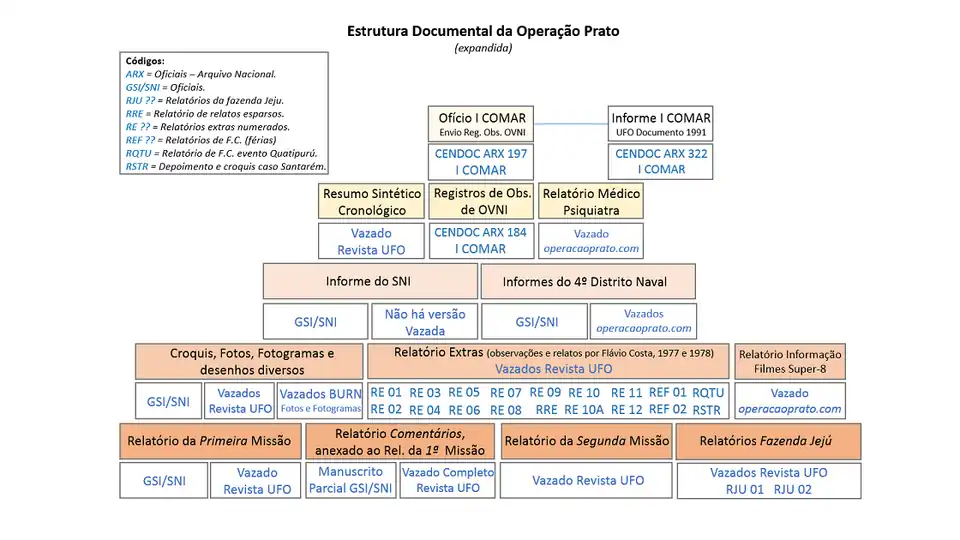 No dia 5 de maio de 2008, foi encaminhado ao Ministério da Defesa ofício do Subchefe para Assuntos Jurídicos da Casa Civil da Presidência da República, recomendando providências para acesso público à documentação referente a OVNIs, conforme solicitação da CBU, que fosse passível de desclassificação de seu grau de sigilo ou material não sigiloso ou que tivesse sido vencido seu prazo de sigilo, e posterior envio ao Arquivo Nacional.[29] Em 23 de abril de 2009, o Centro de Documentação da Aeronáutica - CENDOC, enviou ao Arquivo Nacional no Distrito Federal os primeiros documentos sobre a operação militar no Pará. Os documentos recebidos pelo Arquivo Nacional são organizados em fundos. Um deles passou a ser o fundo BR DFANBSB ARX – Objeto Voador Não Identificado (OVNI). Ele está associado ao órgão FAB-CENDOC. Ainda em 2009, o GSI, liberou dezenas de páginas de documentos do antigo SNI sobre a operação no Pará. Entre eles um informe da Agência de Belém para a Agência Central do SNI em Brasília sobre a Operação Prato. Uma observação importante: os arquivos GSI/SNI não estão na base de dados do Sistema de Informações do Arquivo Nacional – SIAN, portanto, não podem ser acessados eletronicamente como os demais documentos. Eles não pertencem ao fundo OVNI/FAB-CENDOC. Eles são atrelados ao SNI e a ditadura, que é um outro fundo ainda não disponível no SIAN. No entanto, os arquivos do GSI/SNI podem ser acessados no site de Fernando Rodrigues no UOL. O lote GSI/SNI continha várias páginas iguais ou semelhantes àquelas existentes nos relatórios vazados, confirmando a autenticidade de muitas delas.[30]