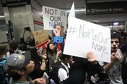- ↑ «#NotInOurName: Protesters Oppose Trump's Muslim Ban at SFO». NBC Bay Area. Consultado em 29 de janeiro de 2017