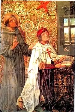 D. Álvaro de Luna vestindo a capa da Ordem e com a cruz de Santiago ao peito, no retábulo de Sancho de Zamora na capela de Santiago na Catedral de Toledo. Foi Grão Mestre da Ordem entre 1445 e 1453.
