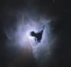 NGC 1999 em Órion, iluminada pela estrela V380 Orionis que parece ter um cavidade em seu interior
