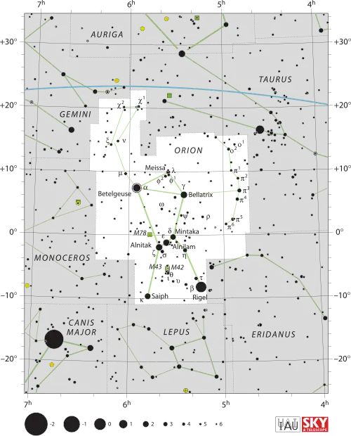 21. 1 2 3 4 Constellation Guide. «Orion Constellation» (em inglês). Consultado em 22 de dezembro de 2016. Cópia arquivada em 22 de Dezembro de 2016