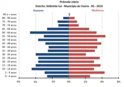 Osório possui um distrito chamado de Atlântida Sul[11] que está localizado entre os municípios de Imbé e Xangri-lá. Tem 2 km de extensão do costa e possui uma população de 1025 habitantes em 2010[8], com uma grande variedade de faixa etárias[12], como se pode ver no gráfico de pirâmide etária a seguir.