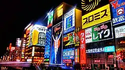 Osaka tem um grande número de atacadistas e lojas de varejo: 25 228 e 34 707, respectivamente, em 2004, de acordo com as estatísticas da cidade.[32] Muitos deles estão concentrados nas enfermarias de Chuō (10 468 lojas) e Kita (6 335 lojas). Os tipos de lojas variam de shoppings a galerias convencionais de shōtengai, construídas acima e abaixo do solo.[33] As shōtengai são vistos em todo o Japão e Osaka tem a mais longa do país.[34]