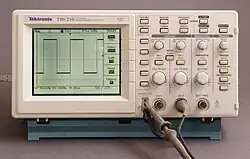 O osciloscópio é um instrumento de medida de sinais elétricos/eletrônicos que apresenta gráficos a duas dimensões de um ou mais sinais elétricos (de acordo com a quantidade de canais de entrada). O eixo vertical (y) do ecrã (monitor) representa a intensidade do sinal (tensão) e o eixo horizontal (x) representa o tempo, tornando o instrumento útil para mostrar sinais periódicos. O monitor é constituído por um "ponto" que periodicamente "varre" a tela da esquerda para a direita.
