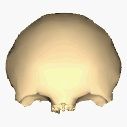 Frontal em destaque no crânio. Vista em 360°.
