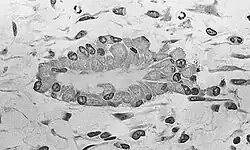 Os Osteoblastos a medida que secretar, por exocitose, sua matriz óssea ele se envolve nela, acabando se tornando um espaço que ele passa a ocupar chamado lacuna. A Maior parte da matriz óssea torna-se calcificada. Existe camada delgada não-calcificada, que não se calcifica depois deste processo ,chamada osteoide que separa os Osteoblastos da sua camada fora mineralizada, os Osteócitos contam com essa camada em suas lacunas.