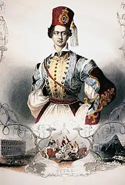 Quando foi escolhido para ser rei, as Grandes Potências conseguiram uma promessa do pai de Otão que o impedia de se envolver em ações hostis contra o Império Otomano e insistiram que o seu título fosse de "rei da Grécia" e não "rei dos gregos", porque este último implicaria uma pretensão sobre os milhões de gregos ainda sob domínio turco. Antes de fazer dezoito anos, o jovem príncipe chegou à Grécia com 3 500 tropas e três conselheiros da Baviera a bordo da fragata britânica HMS Madagascar. Otão criou imediatamente uma ligação de afecto com o seu novo país com a adopção do traje tradicional grego e da "helenização" do seu nome para Othon.