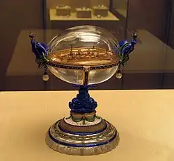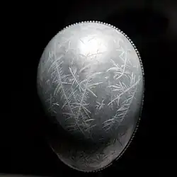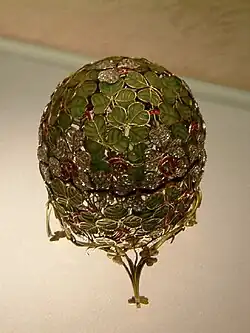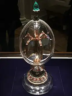 | 1896 | Cristal de rocha | ![]() | Também conhecido como ovo giratório em miniatura. | Museu de Belas Artes da Virgínia, Richmond, Virgínia, EUA |