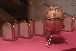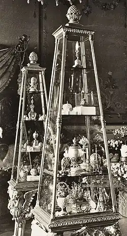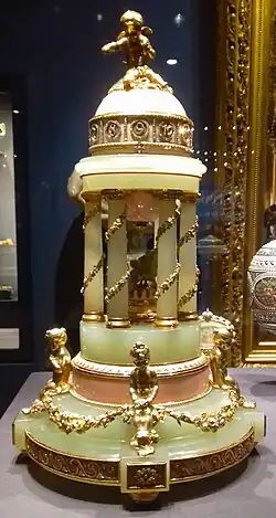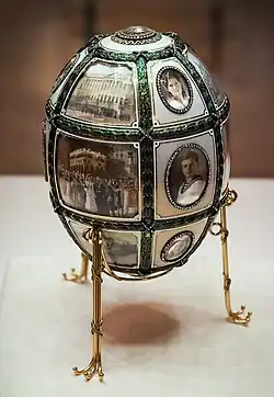 | 1890 | Palácios Dinamarqueses | ![]() | Alexandre III presenteou sua esposa, Maria Feodorovna, na Páscoa de 1890. | Fundação Matilda Geddings Gray, alojada no Metropolitan Museum of Art, em Nova York, até 2021.[7] |