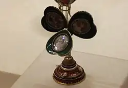 | 1902 | Empire Nephrite | ![]() | A surpresa é um retrato em miniatura da grã-duquesa Olga Alexandrovna da Rússia e do duque Peter Alexandrovich de Oldenburg (original perdido). | Coleção particular, Nova York[10] |