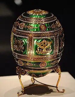 Os ovos Fabergé são obras-primas da joalharia produzidas por Peter Carl Fabergé e seus assistentes no período de 1885 a 1917 para os czares da Rússia. Os ovos, cuidadosamente elaborados com uma combinação de esmalte, metais e pedras preciosas, escondiam surpresas e miniaturas. Encomendados a Peter Carl Fabergé, eram oferecidos na Páscoa entre os membros da família imperial. Disputados por colecionadores em todo o mundo, os famosos ovos de Páscoa criados pelo joalheiro russo são admirados pela perfeição e considerados expoentes da arte joalheira.[1]