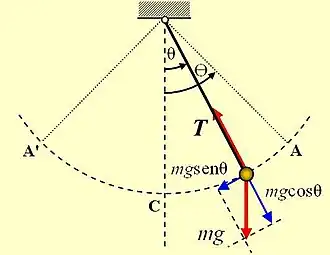 Uma ilustração de um pêndulo simples.