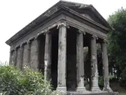 Os romanos favoreciam o uso do pórtico de quatro colunas em seus templos pseudoperípteros, tais como o Templo de Portuno, e para anfipróstilos como o Templo de Vênus e Roma, e para prostilos de grandes edifícios públicos como a Basílica de Constantino.