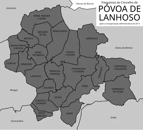 O município de Póvoa de Lanhoso está dividido em 22 freguesias: