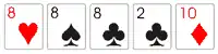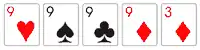 3 Quadra ou Poker Four of a kind São 4 cartas iguais. Em caso de empate, ganha o jogador com a quadra mais alta. 624