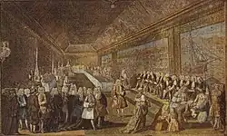 "Lava pés aos pobres por D. João V", uma das raras representações do interior do Paço da Ribeira (c. 1748)
