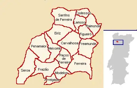 Mapa das freguesias do concelho de Paços de Ferreira