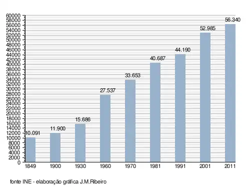 (Obs: De 1900 a 1950 os dados referem-se à população "de facto", ou seja, que estava presente no concelho à data em que os censos se realizaram. Daí que se registem algumas diferenças relativamente à designada população residente)